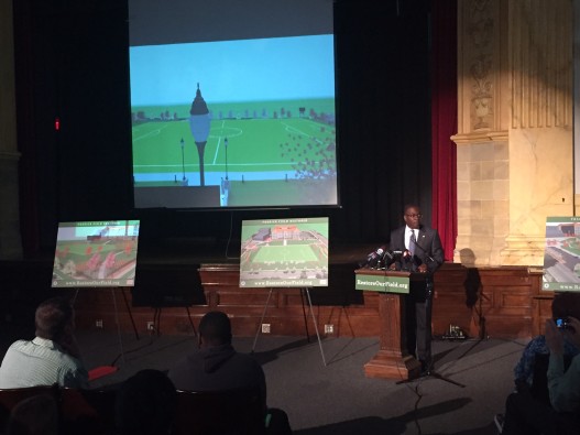 Buffalo, June 30, 2015: The City Honors/Fosdick-Masten Park Foundation has unveiled results of a year-long schematic design and development process to reassemble the footprint of the school’s original campus and restore historic Fosdick Field. The Foundation has also announced the launch of a capital campaign to secure the funds needed for reacquiring the land from the Buffalo Municipal Housing Authority.